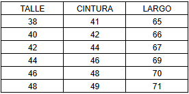 TABLA DE TALLES