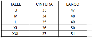 TABLA DE TALLES