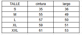 TABLA DE TALLE